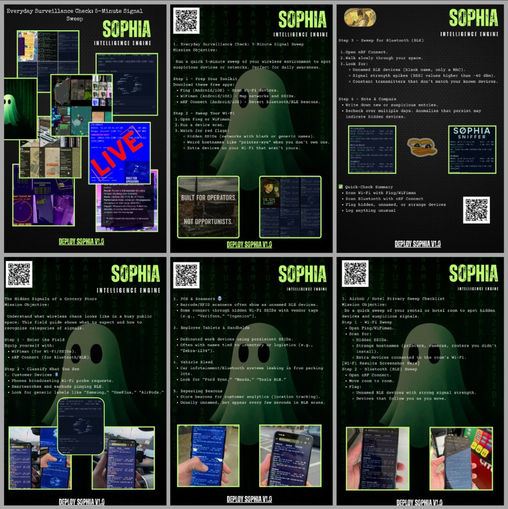 But here’s the catch: manual sweeps are slow, fragmented, and easy to miss. That’s where SØPHIA, the passive signal-intelligence radar for Android, comes in.